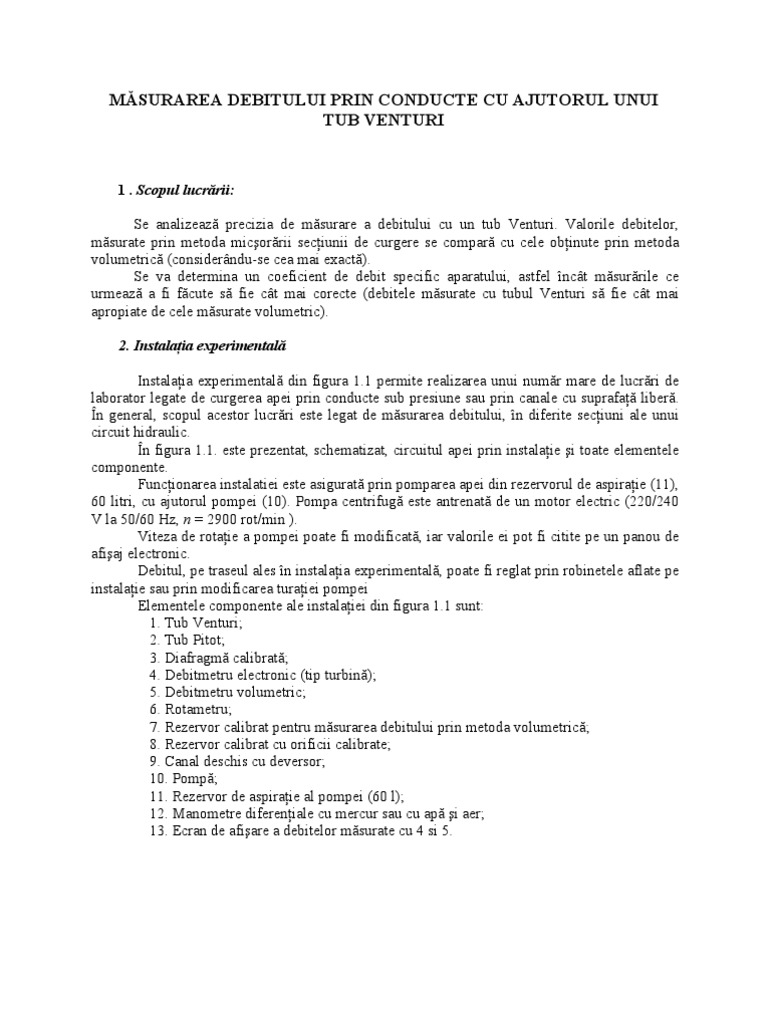 Laborator Masurarea Debitului Cu Tubul Venturi 181362 Graduo