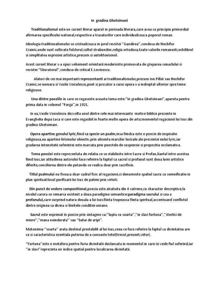 Referat In Gradina Ghetsemani De Vasile Voiculescu 327556 Graduo