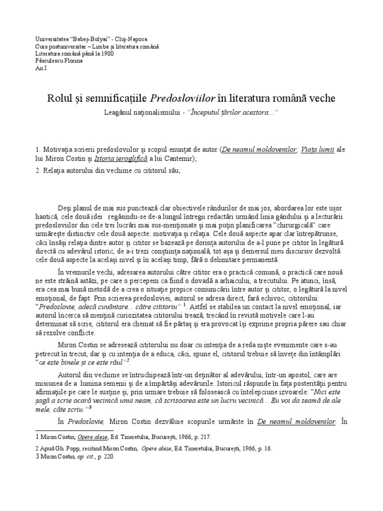 Analiza Text Miron Costin